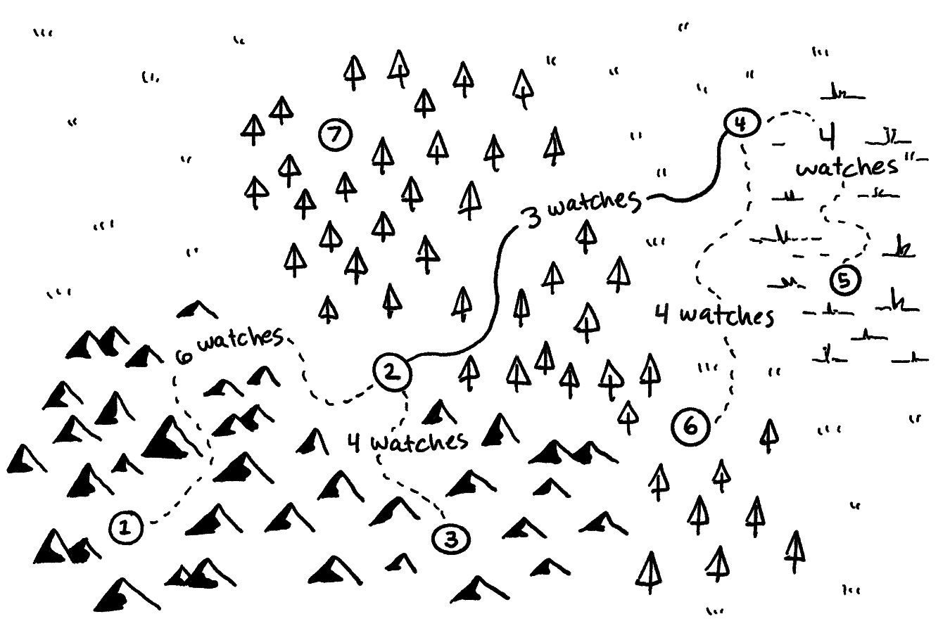 - A jornada para 7 a partir de qualquer outro ponto deve ser de pelo menos 5 Vigílias: